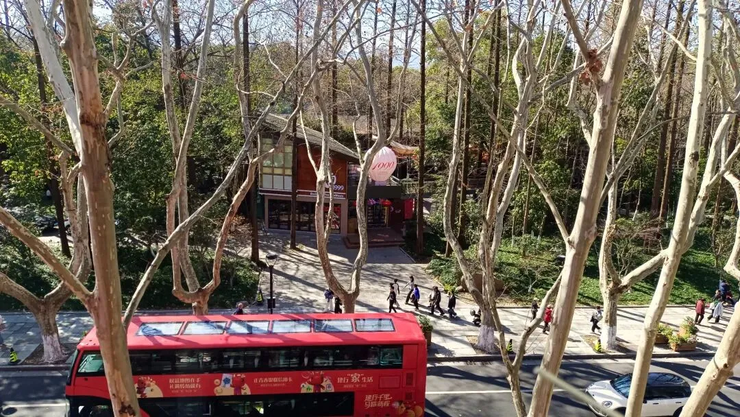 四楼露台:我选的座位,据说是杭州亚运会期间摄影师的专属机位。可以看见远处的西湖,也可以看见近处的梧桐。喜欢拍照的小伙伴,这里非常出片,尤其日落时分!