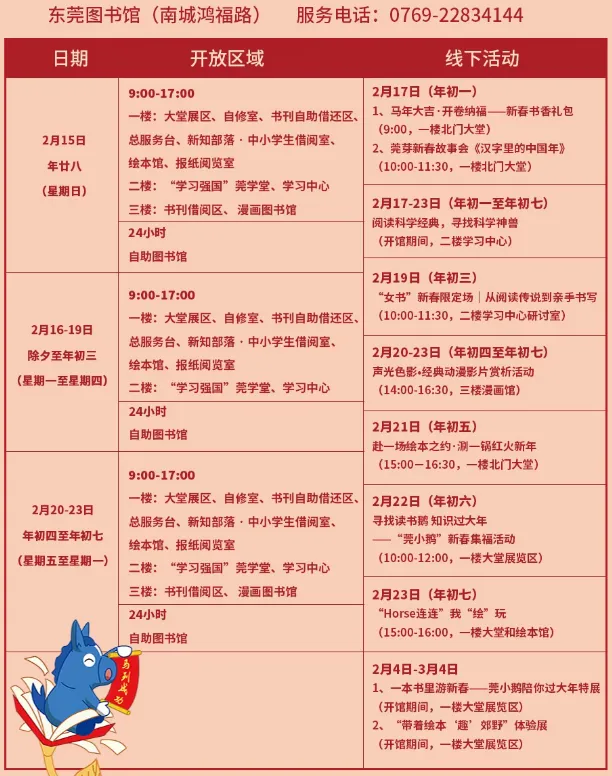 内容:活动融合“莞小鹅”印章集福、新春剪纸体验、观展寻鹅等活动,现场限量发放莞小鹅文创品。