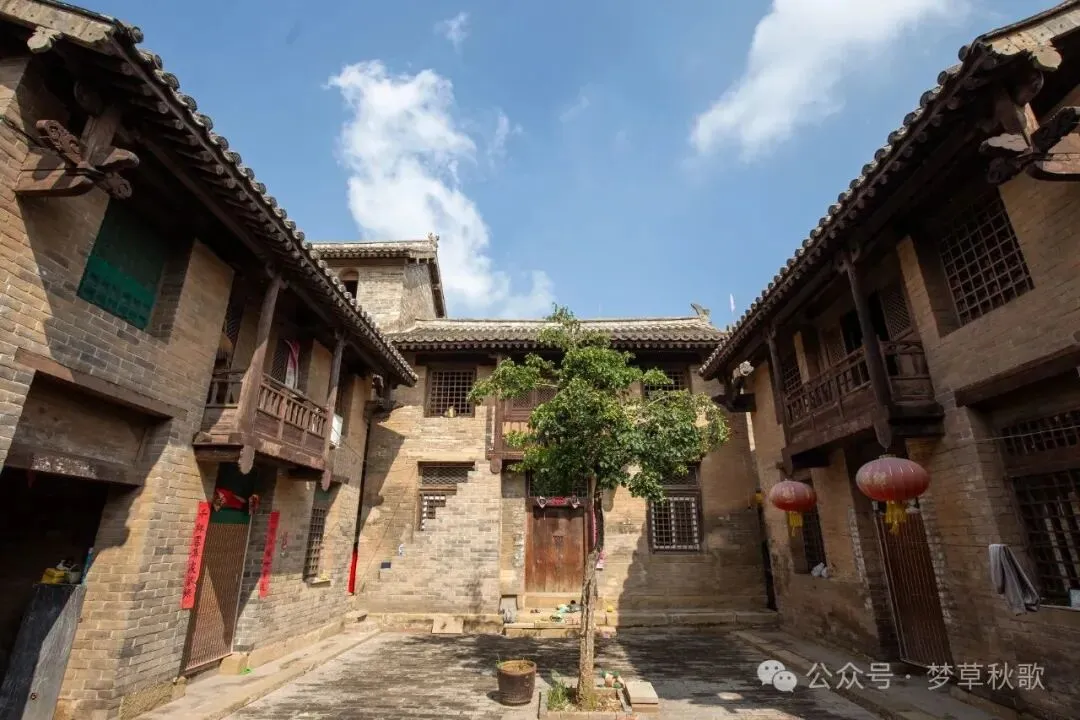 我们先去了最有名的尚书府,这是古堡里最大的一组建筑群,分上下两处宅院,是明代兵部尚书张五典的府邸。上宅是棋盘六院的布局,府门朝东,高大峻伟,走进去有种豁然开朗的感觉;下宅由三进院落组成,典型的北方民居特色,院院相通,回廊相连。院内的木梯窄陡,阶宽仅容半履,攀登时吱呀作响,仿佛在和往昔对话。站在院子里抬头看,木窗棂格错落有致,依稀可见残存的窗纸,梁柱间的雕花雀替保存完好,阳光透过窗棂洒进来,在地上投下斑驳的光影,氛围感直接拉满。向导说,当年张五典告老还乡后主持修筑窦庄城堡,修了五年还没完工就去世了,后来是他的儿媳霍氏接过重任,率众完成了这项工程,而这位霍氏夫人,就是让窦庄名扬天下的"夫人城"主角。