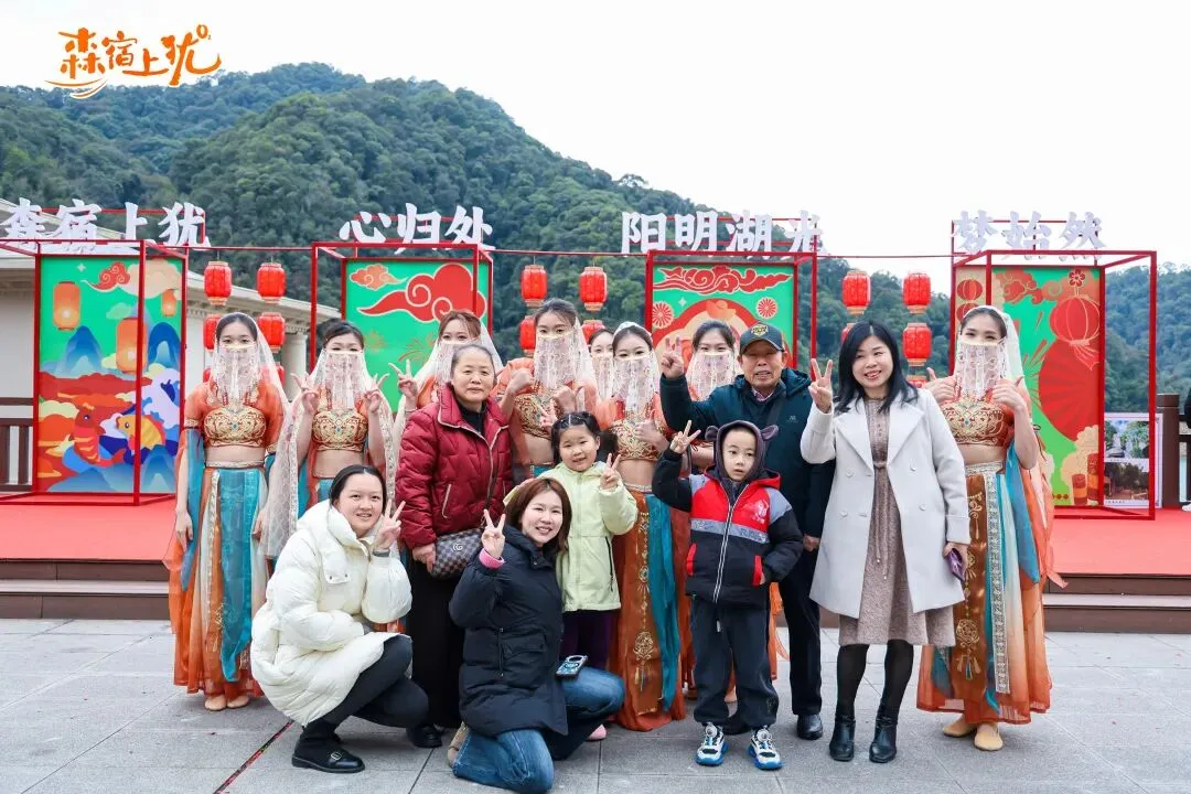 阳明湖景区以山水为幕打造的“湖光舞影秀·新春嘉年华”活动,景区内龙狮欢腾闹新春,点燃现场喜庆氛围;七大特色演绎轮番登场,吸引着各地游客慕名而来,景区内处处熙熙攘攘,游人们赏美景、看表演、参与互动,尽享马年新春的欢乐。