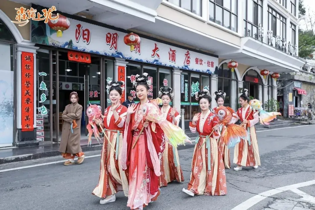 步入九曲·龙溪谷民宿的“森宿上犹·国风游园会”,便如悄然走进了水墨渲染的山水长卷。茶仙子盈盈领路,十二位“花神”衣袂飘飘、执花而行,宛若从古典诗画中款款走出,成就了一场“行走的东方浪漫美学盛宴”,引得游人频频驻足,拍照声与赞叹声不绝。