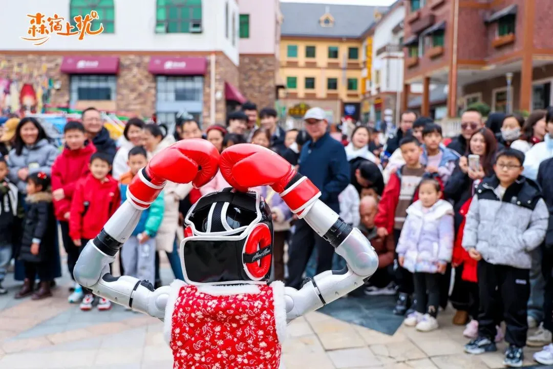 在梦幻奇遇城,“数智闹新春 AI启新程”主题为科技爱好者和亲子家庭开启了一场未来狂欢。宇树人形机器人化身硬核舞者,回旋踢帅度拉满,引得观众纷纷驻足欢呼,拍照打卡。机甲明星“黑神话悟空”与“大黄蜂”霸气巡游;机械小狗灵活穿梭,萌趣表演圈粉无数;机器人格斗擂台上的紧张对决,更是碰撞出金属与智慧的激烈火花。
