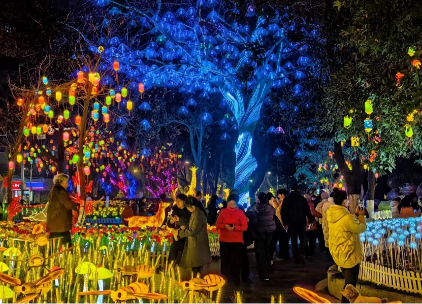 春节期间,位于赛城湖景区的“千灯焰”活动正在火热举行。夜色下,景区灯火璀璨、流光溢彩,变身新春“不夜之城”,市民游客沉浸式畅游灯海、观赏特色演艺,在马年新春氛围中尽享自然之美、文化之韵与科技之奇的夜游盛宴。