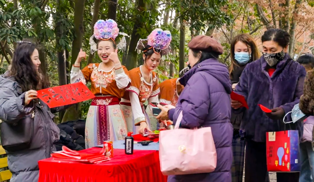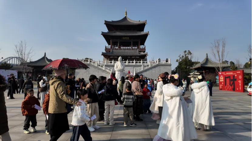 浔阳江畔,身着汉服的NPC穿梭于游人之间,一瞬之间,浔阳仿佛回到了江州司马的时代,沉浸式体验拉满;琵琶亭前,民乐婉转悠扬,余音绕梁,引得行人纷纷驻足聆听;浔阳楼内,水浒评书绘声绘色、妙趣横生,让人仿佛身临其境;锁江楼中,游客们将写满美好期许的祈福带系于树梢,寄托对新年的美好祝愿;长江国家文化公园(九江城区段)的儿童公园里同样人头攒动,阳光下孩童们肆意奔跑、嬉笑玩耍,浓浓的浔阳年味,就在这一片欢声笑语中温暖绽放。