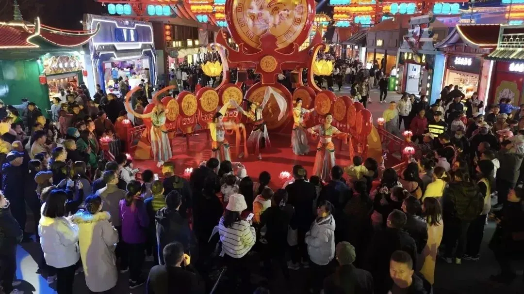 九江之夜街区锣鼓齐鸣、红绸飞扬。春节期间,九江之夜非遗盛宴“燃”动马年,为市民、游客和返乡乡亲呈上一道年味浓郁、古今交融的文旅大餐。本次游园会以“非遗+国潮+科技”为主线,集结了火龙舞狮、打铁花、中华英歌舞、傩舞祭祀、国潮飞天秀、非遗鱼灯巡游等数十项民俗演艺活动,每天演出场次达40余场。