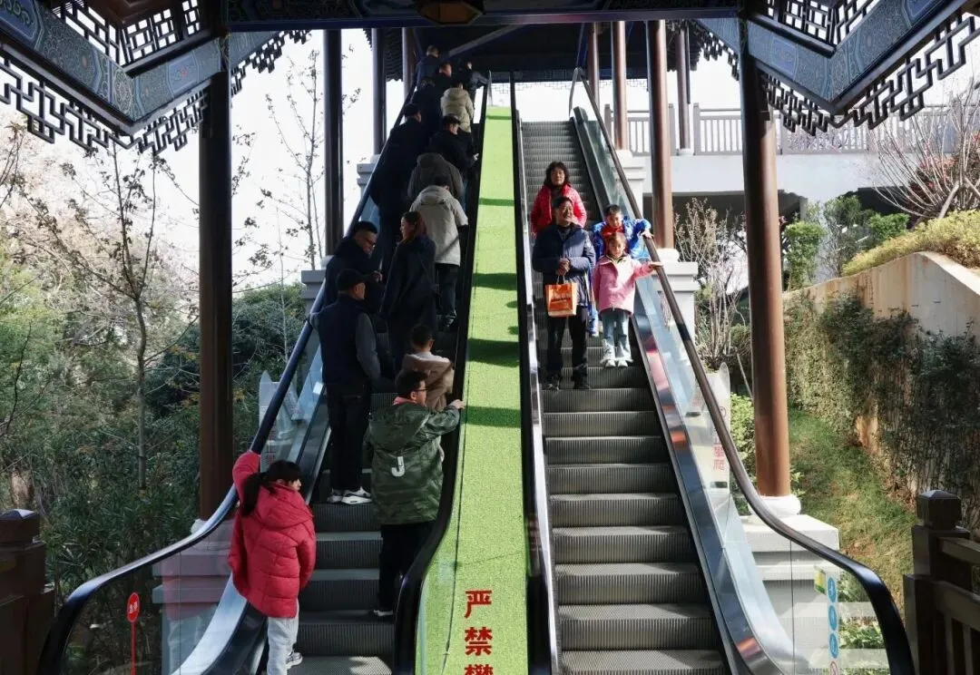 新春佳节的南山公园,人潮如织、欢声笑语。这里不仅有直通山顶的观光扶梯,有焕新归来的德化名楼,还有一片凌寒绽放的暗香梅海。返乡游子、外地游客、本地市民相聚于此,乘扶梯、登名楼、赏梅花,在山水之间细品家乡的温度。
