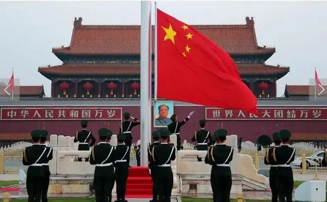 早起后,早餐打包,观看庄严的【升旗仪式】。