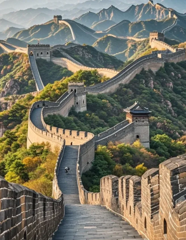前往【八达岭长城】参观世界八大奇迹之一,在这里您可以体会“不到长城非好汉的”的豪迈。万里长城象一条龙盘踞在祖国的北面,绵延数万里,纵贯两千年雄伟壮观,气势磅礴。登上长城,脚下的崇山峻岭,蜿蜒起伏。四季风光各不相同:春天野花竞开-夏季绿色满眼-秋天层林尽染-冬来域莽莽,景色令人叹为观止。
