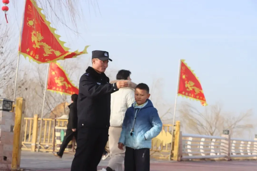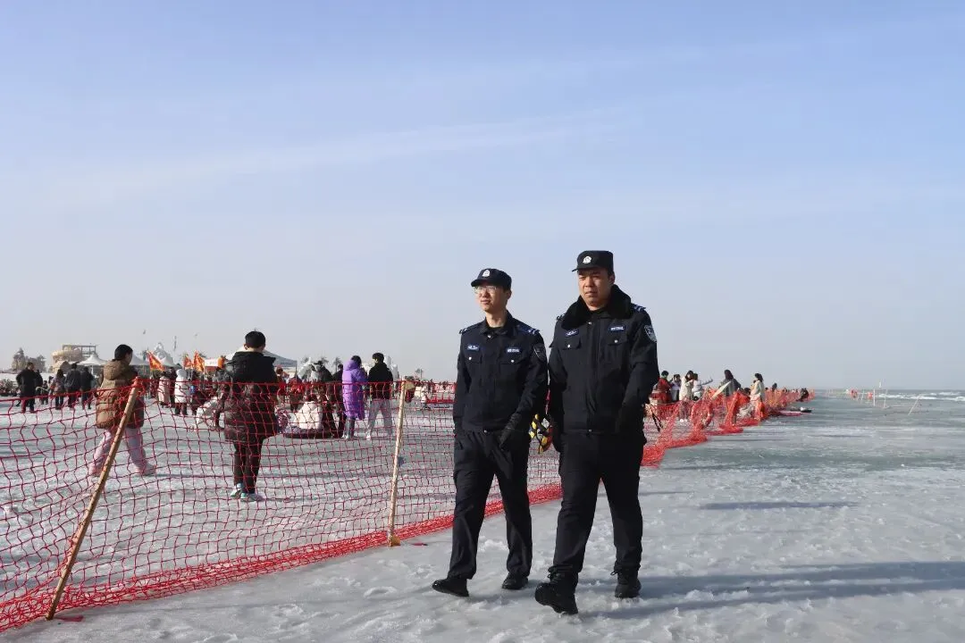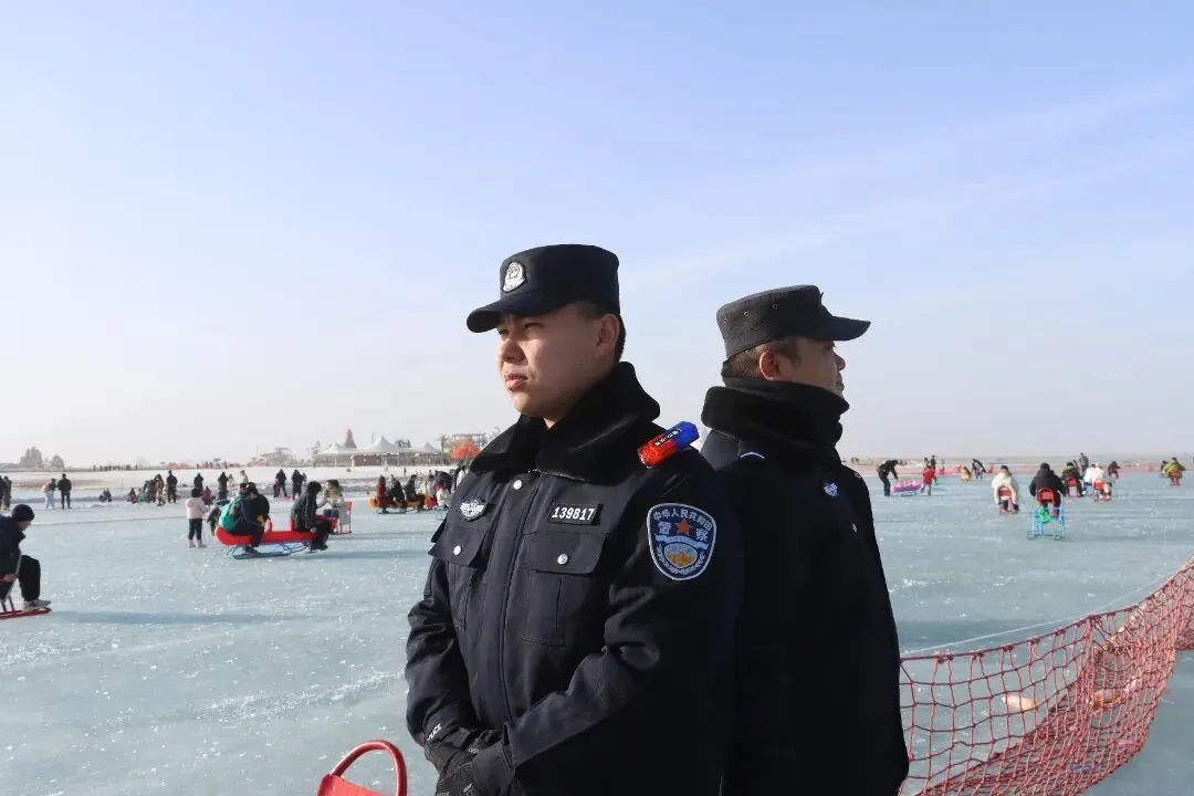 2月20日,大年初四。博斯腾湖大河口景区里,人比前两天还多。天气回暖,游客都往景区里头走。看雪雕的、逛冰雕园的、拍照打卡的,一拨一拨往里进。博湖县公安局设在景区里的流动巡逻组, 穿梭在景区主干道与湖边栈道之间的巡逻队员,排查安全隐患的同时,随时回应着游客的求助。