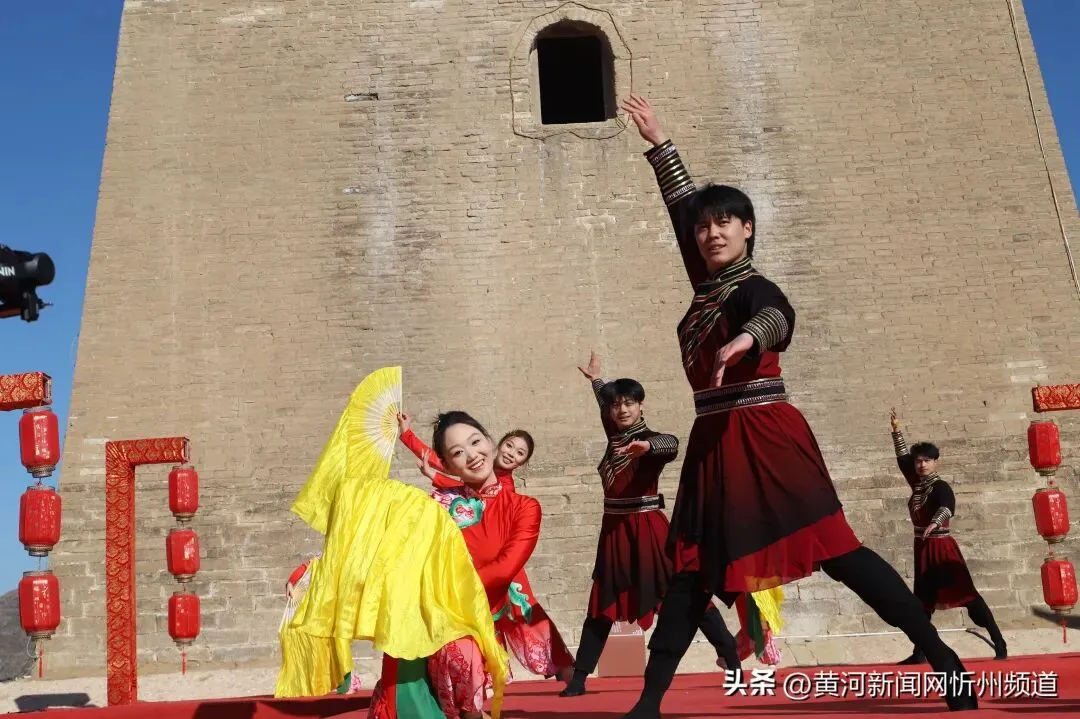景区打卡处成为歌舞的海洋。"雄关欢歌"民俗歌舞每日四场(上午10:30、11:30,下午3:30、4:30)倾情上演,紧随其后的"美美与共·古堡春晓"新春舞阵以恢弘的阵势和欢快的节奏,将节日气氛不断推向高潮。此外,"桃红柳绿"民间舞蹈轻盈灵动,舞者彩衣翩跹,与身后的黄河与古堡相映成趣,引得游客纷纷拍照留念。