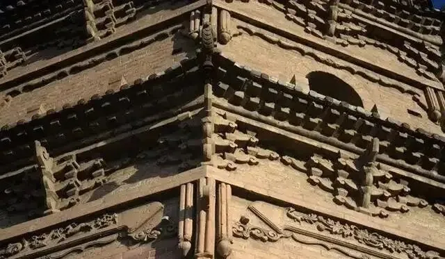 塔身每层开有券门,但非固定格式,青砖叠涩出檐,檐下为砖雕仿木额坊、斗栱,转角为垂花,塔身单面有的为素面,有的雕有龙凤、鱼、牡丹、梅花、卷草等。三到五层设平座,塔刹为宝珠形。