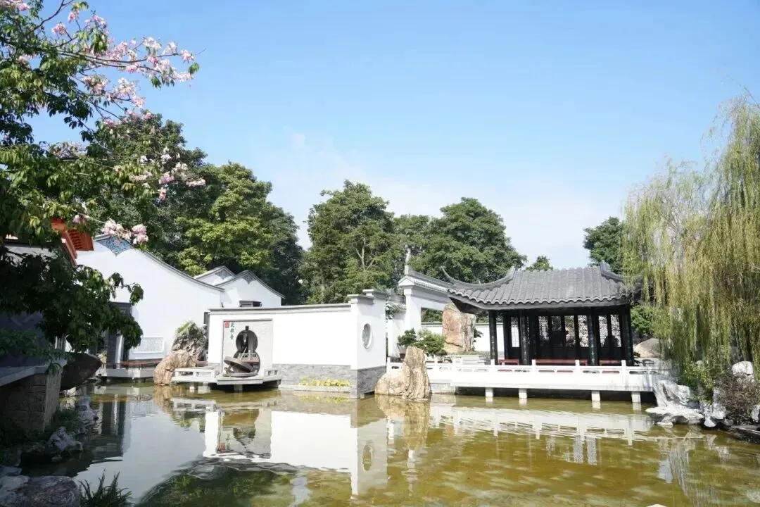 步入中医药文化园林,仿佛置身一幅江南画卷。这里以千年重阳古树林为基,打造了妙手石、归来亭、万隆湖等多处人文景致,并种植百余种中药材,其中“红色·福药”园区集中展示了福建道地药材“福九味”,一步一景皆蕴藏中医智慧。