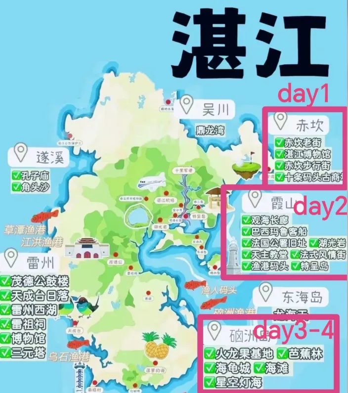南极村、灯楼角、菠萝的海、角尾乡、大汉三墩、徐闻港