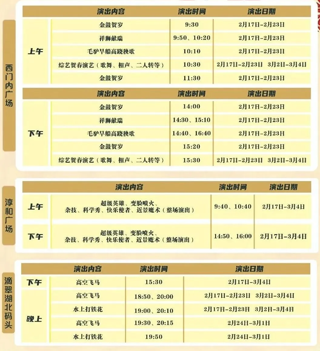 洛邑古城春节演出节目单(正月初一至初七)