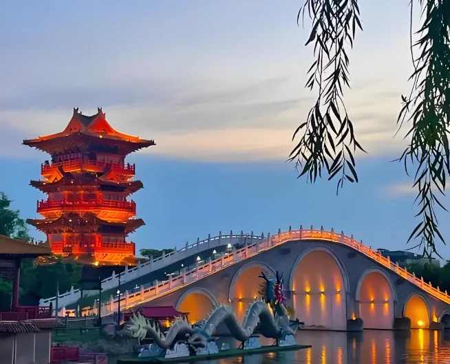 第四站:龙亭景区——登高远眺,一览古城沧桑龙亭是八朝皇宫的遗址,站在上面能俯瞰整个开封古城,尤其是傍晚时分,夕阳洒在潘杨二湖上,美得像一幅油画。这里还有大型沉浸式游园《大宋风云》,您可以化身名臣侠客破获谜案,烧脑又好玩。门票40元起,建议下午4点后去,既能看白天的雄伟,又能等晚上的灯光秀。