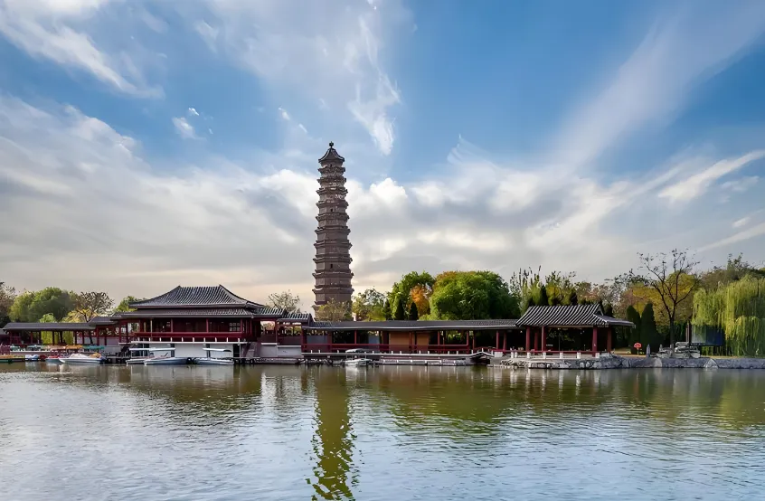 第五站:铁塔公园——历经千年的“天下第一塔”别以为铁塔是铁做的,它其实是琉璃砖塔,历经战火和地震屹立不倒,堪称建筑奇迹。塔身的飞天、麒麟雕刻精美绝伦,阳光下琉璃瓦熠熠生辉。这里门票只要30元,是开封最良心的景点之一。最适合带长辈来,走走竹林,看看古塔,非常惬意。