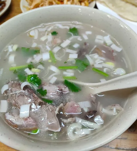 第二美食:胡辣汤——开封人的早安魂来一碗张记逍遥胡辣汤,麻辣鲜香,浓稠醇厚。配上水煎包或者油馍头,这是开封人最地道的早餐组合。别怕辣,那是胡椒的热辣,喝完一身汗,通体舒畅。