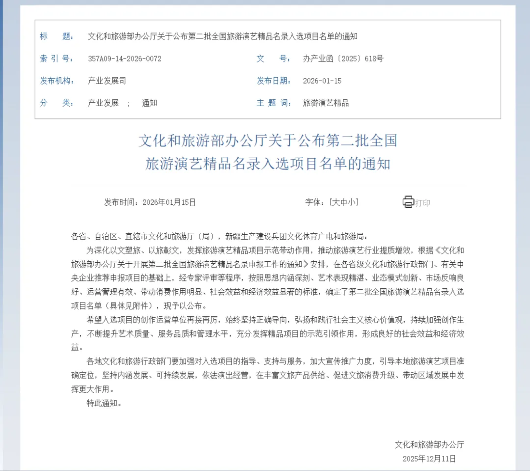 来源:中华人民共和国文化和旅游部官网