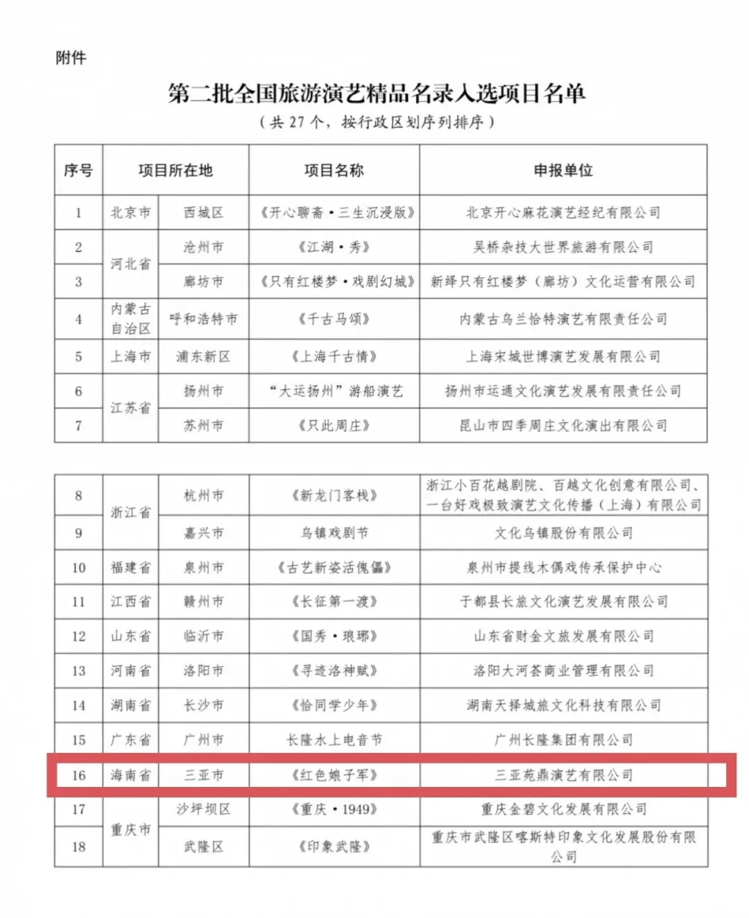 重磅喜讯,1月15日,中华人民共和国文化和旅游部产业发展司公示了第二批全国旅游演艺精品名录入选项目名单。陕西旅游集团三亚项目——大型椰海实景演出《红色娘子军》,凭借其深厚的红色文化内涵与震撼的沉浸式体验,成功入选并成为海南省唯一上榜项目!为海南文旅产业再添一张“国家级”金名片!