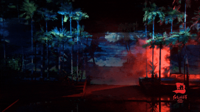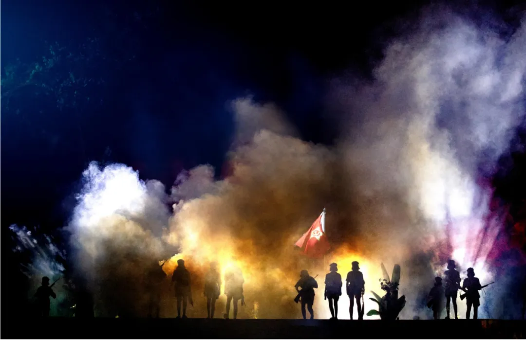 大型椰海实景演出《红色娘子军》用技术打破时空壁垒,让观众真正“走进”那段峥嵘岁月。项目成立初期就构建了一套完整复杂的技术体系,涵盖了“视觉、听觉、触觉、特效”等多个维度,多个系统,多种技术的集成。