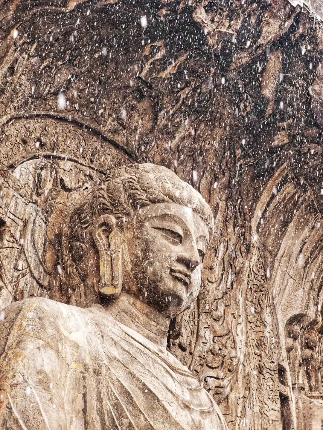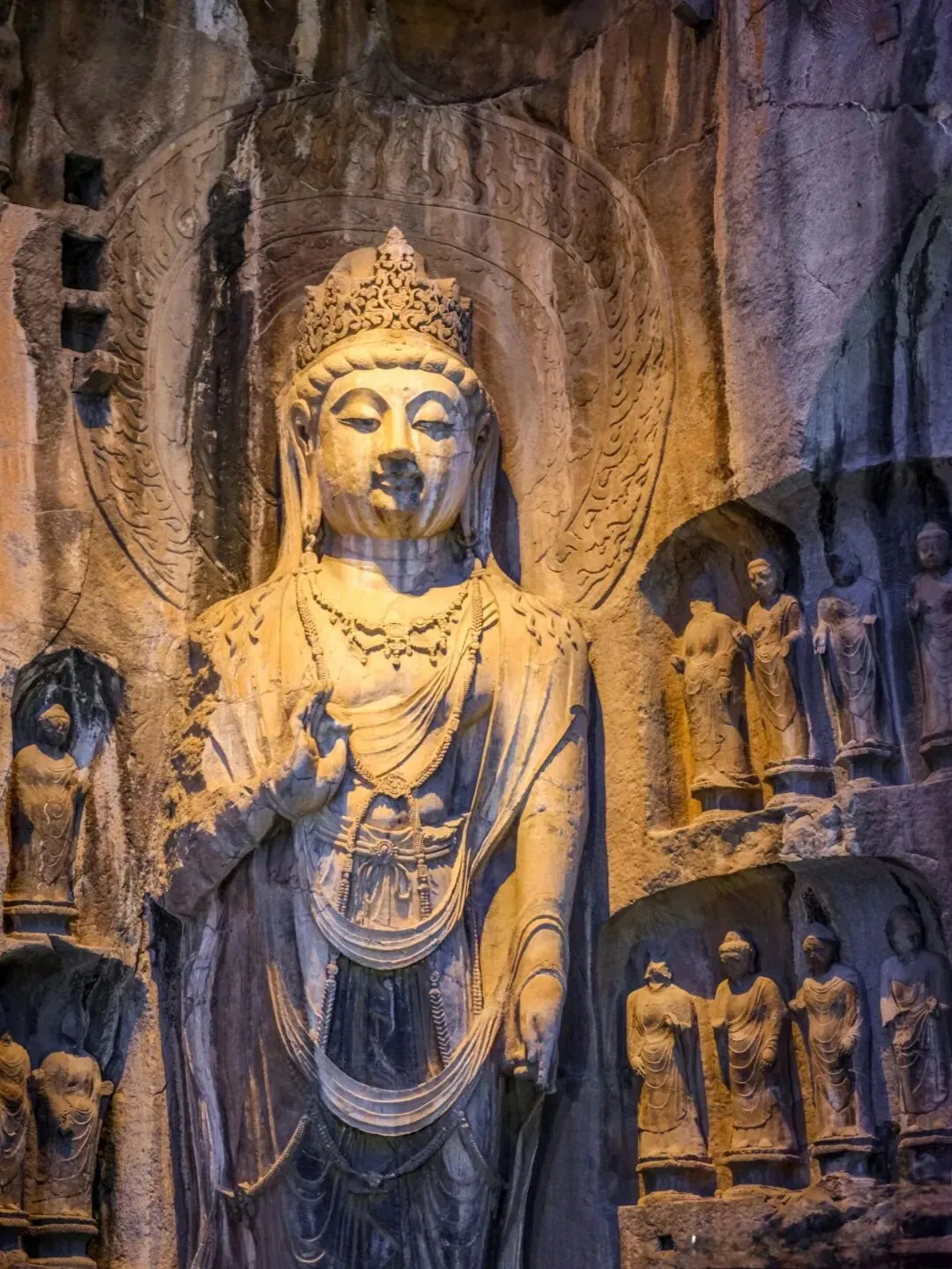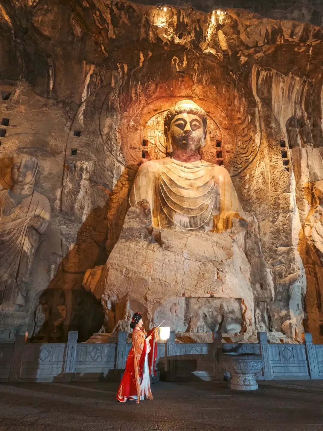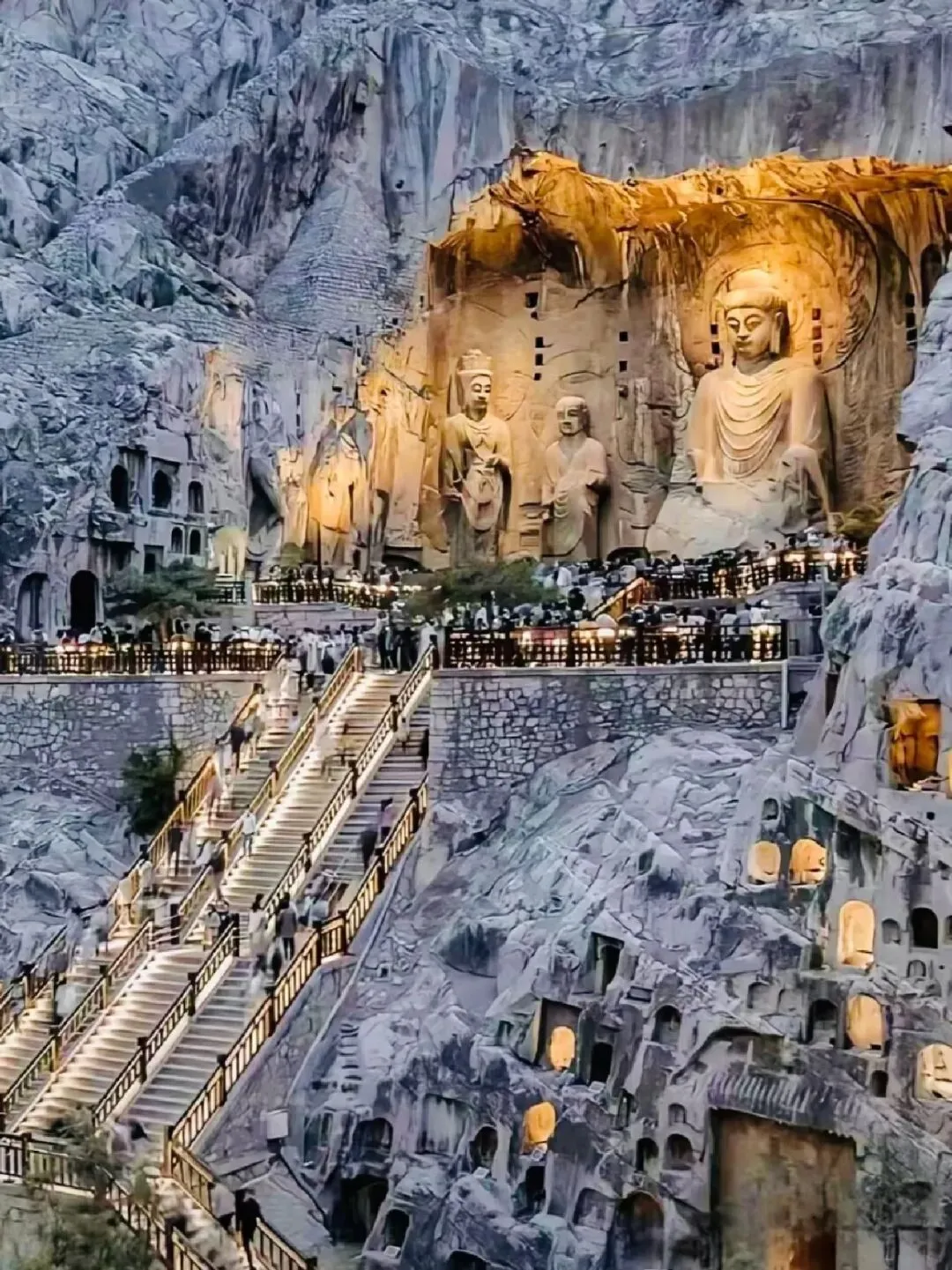 夕阳西下,崖壁灯光次第亮起,卢舍那大佛在光影中更显庄严。游人依旧往来不息,欢声笑语回荡在山谷间。此刻的龙门石窟,不仅是历史的载体,更是团圆的见证、幸福的缩影。一草一木皆含情,一窟一像皆传韵,游人如织的盛景,书写着新春的祥和与热闹,也诉说着千年石窟生生不息的文化生命力。