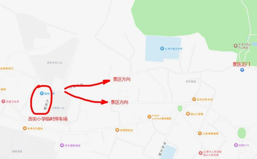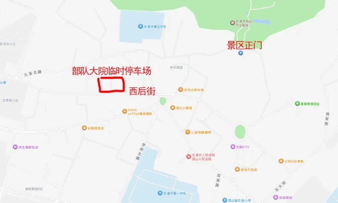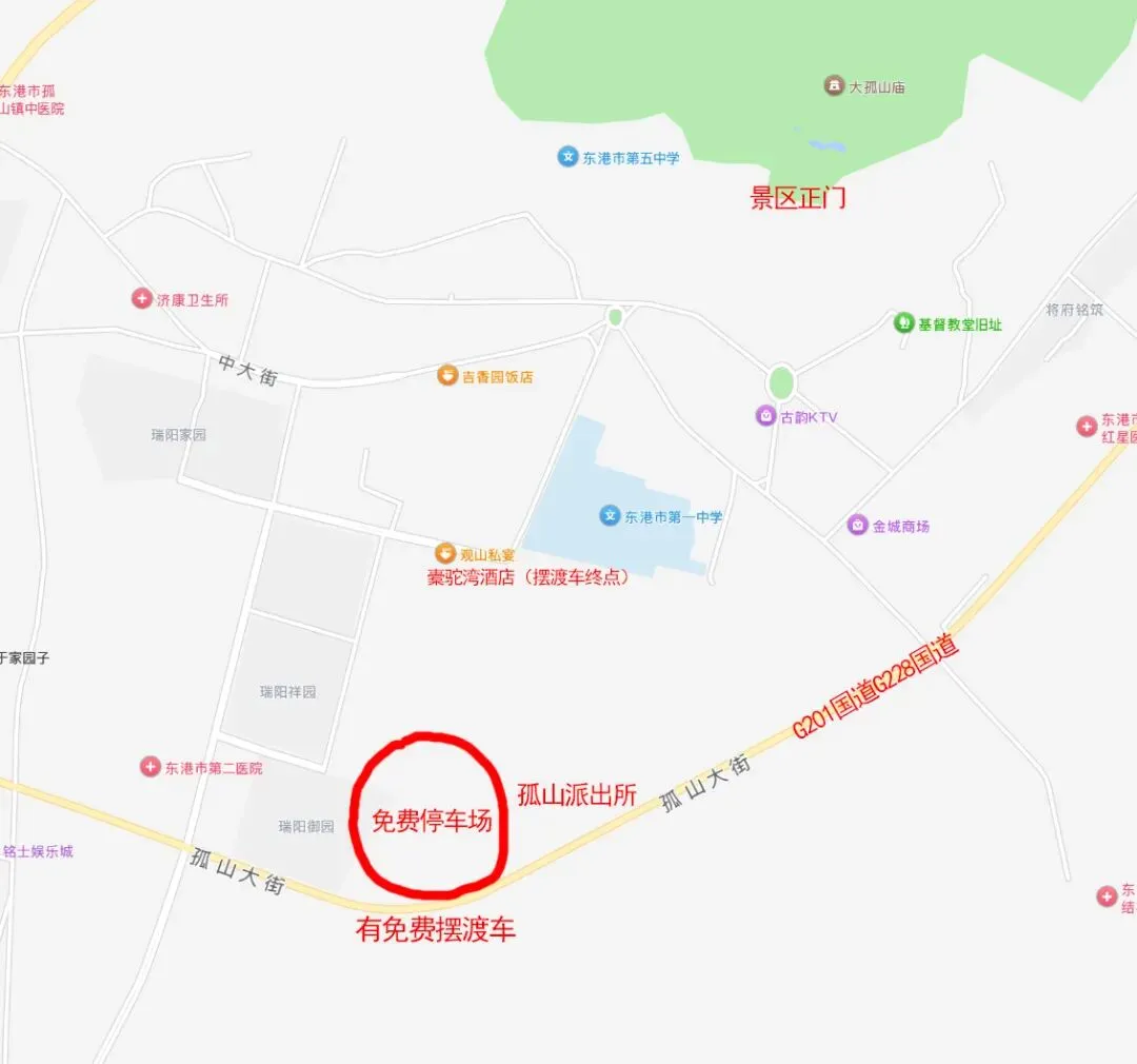 注意: 节日期间前往大孤山景区和镇内免费停车场的路口会根据景区和镇内人流车流而临时封闭。请服从交管部门的指挥,前往相应停车场。 预祝您大孤山之旅乘兴而来,尽兴而去。