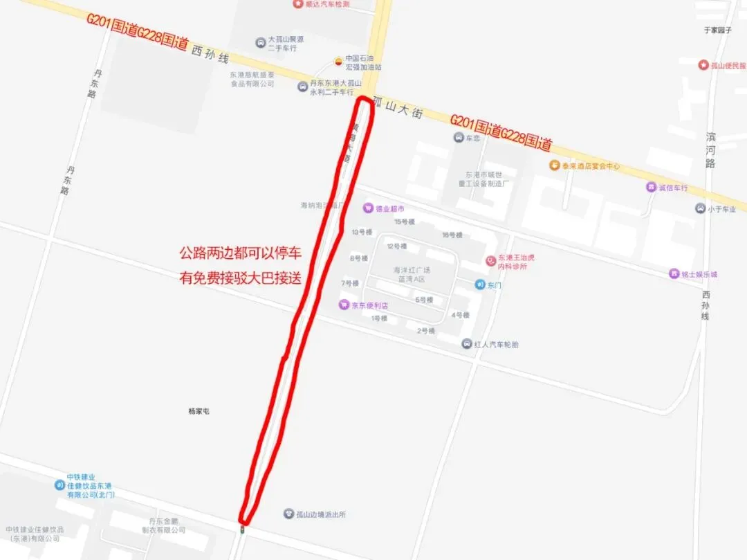 2、黄海大道两侧应急停车场:高德导航关键词黄海大道与201国道交叉口,腾讯导航点下图。