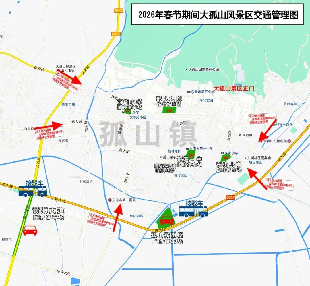 新春佳节至,孤山胜景迎!为保障丙午马年春节期间大孤山景区交通顺畅,即日起至农历正月初八,孤山镇将实施临时交通管制,并提供免费停车及接驳服务。具体安排如下: