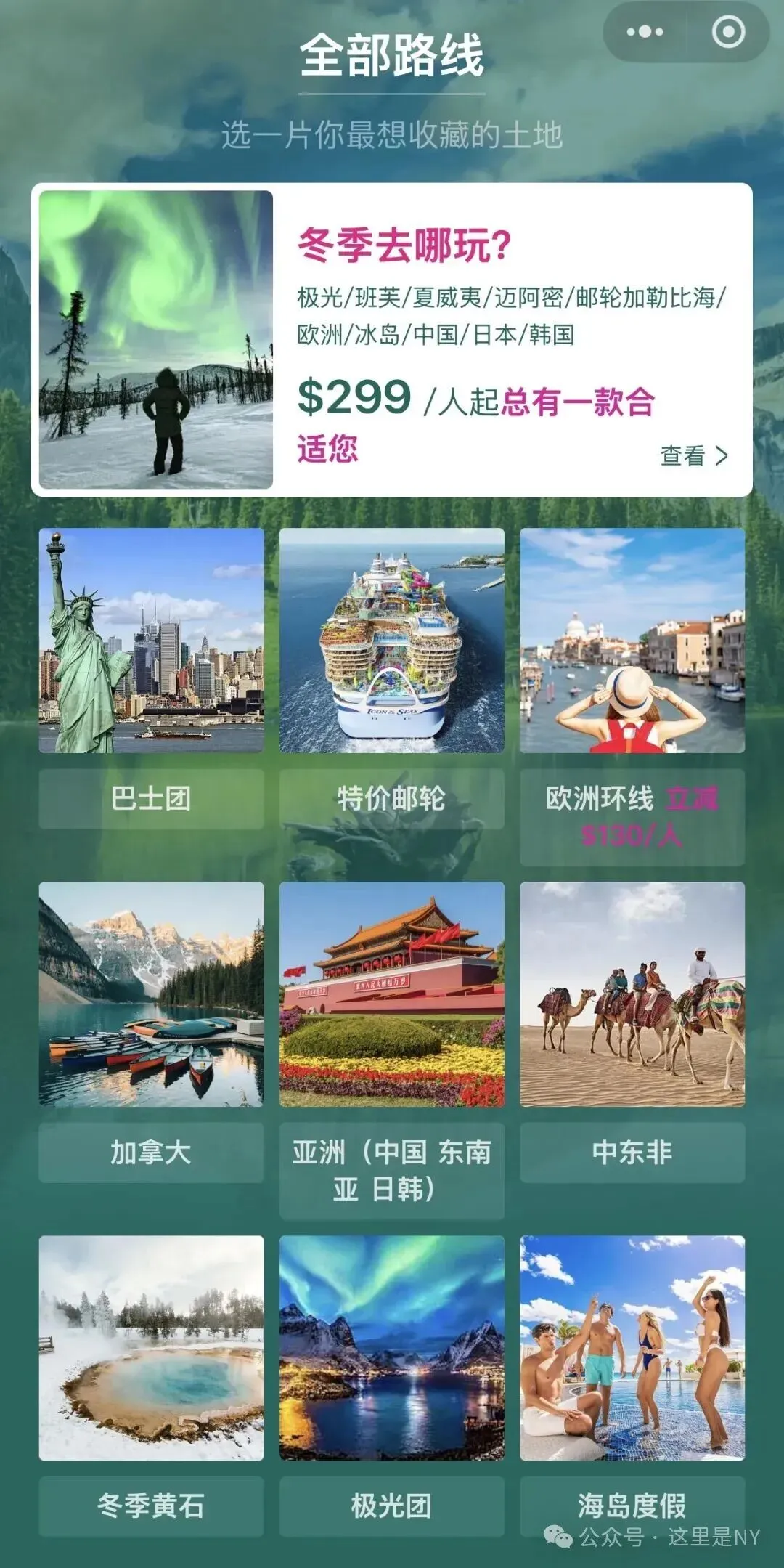 👉 我们全新上线了【纽约人假期|特价路线合集】小程序!