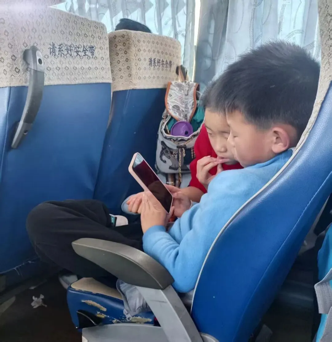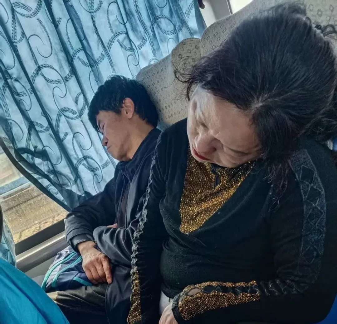 (刚上车时,精神抖擞看手机。下车撒尿之后,上车就睡觉,而且睡得那么香甜)