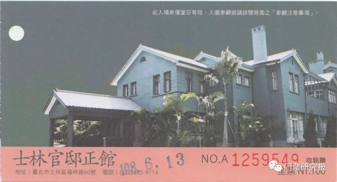 还有位于台北市士林区福林路的士林官邸,这里集中西式园林于一体,草绿花艳、椰林参天,既是游客的观赏处,也是市民的游憩之地。蒋介石夫妇来台后,先居于草山行馆(阳明山),1950年士林官邸落成后,他们正式迁居到这里直至1975年病逝,在官邸度过了整整26年的时光。因此,这里是蒋介石最具代表性的故居。士林官邸的外花园游客们可以自由参观游览,官邸正馆周围设有栅栏墙,游客购票入内参观,门票为100新台币以及半价票。旅行团只是在外花园游览,参观官邸正馆门票自理,我们购票进去匆匆浏览了里面蒋氏夫妇昔日工作生活故居。这里的门票与故宫票尺寸相似,票面呈灰色与整栋建筑色调一致,显得庄重肃穆。这是此次唯一自费参观的景点。