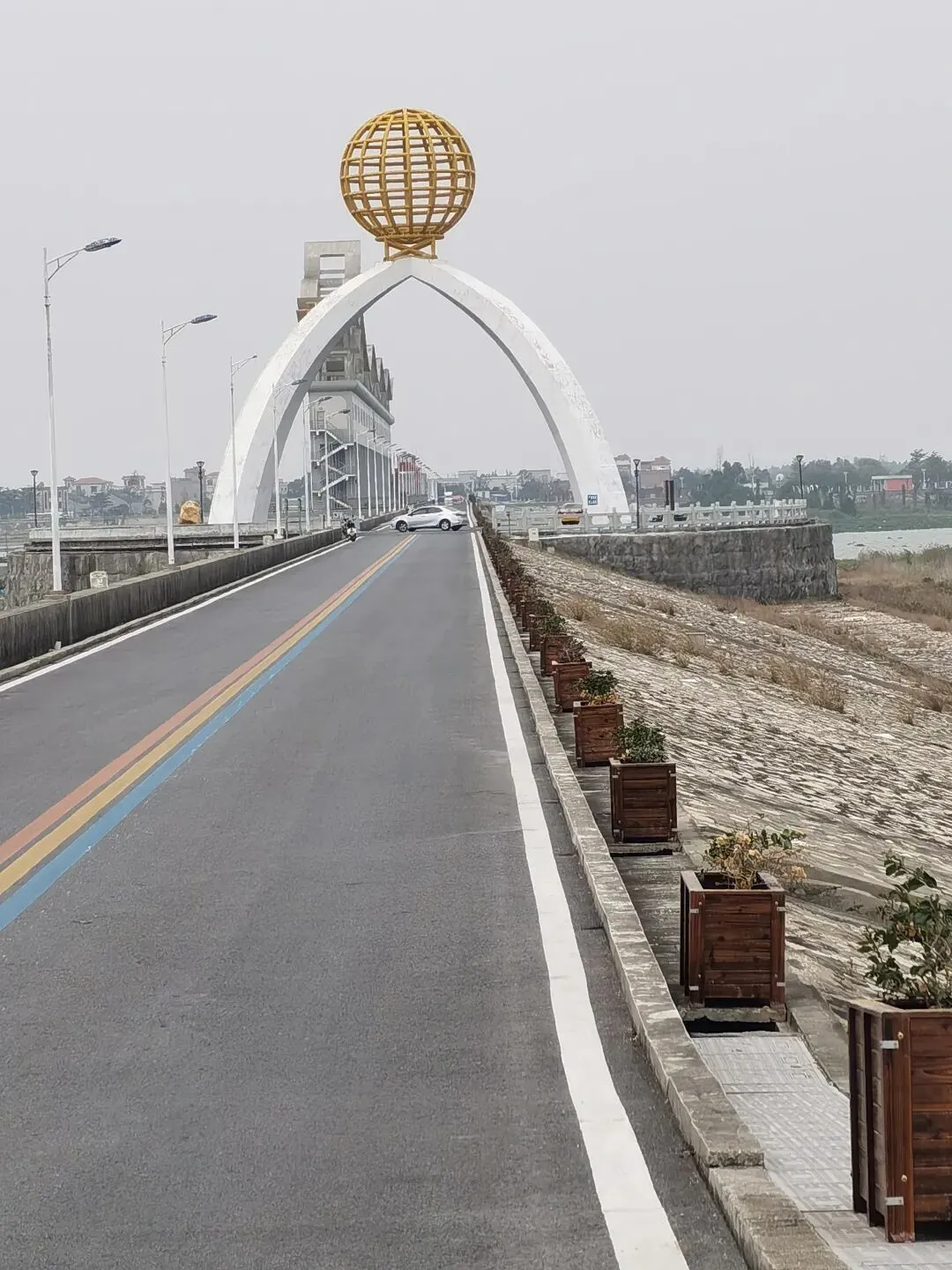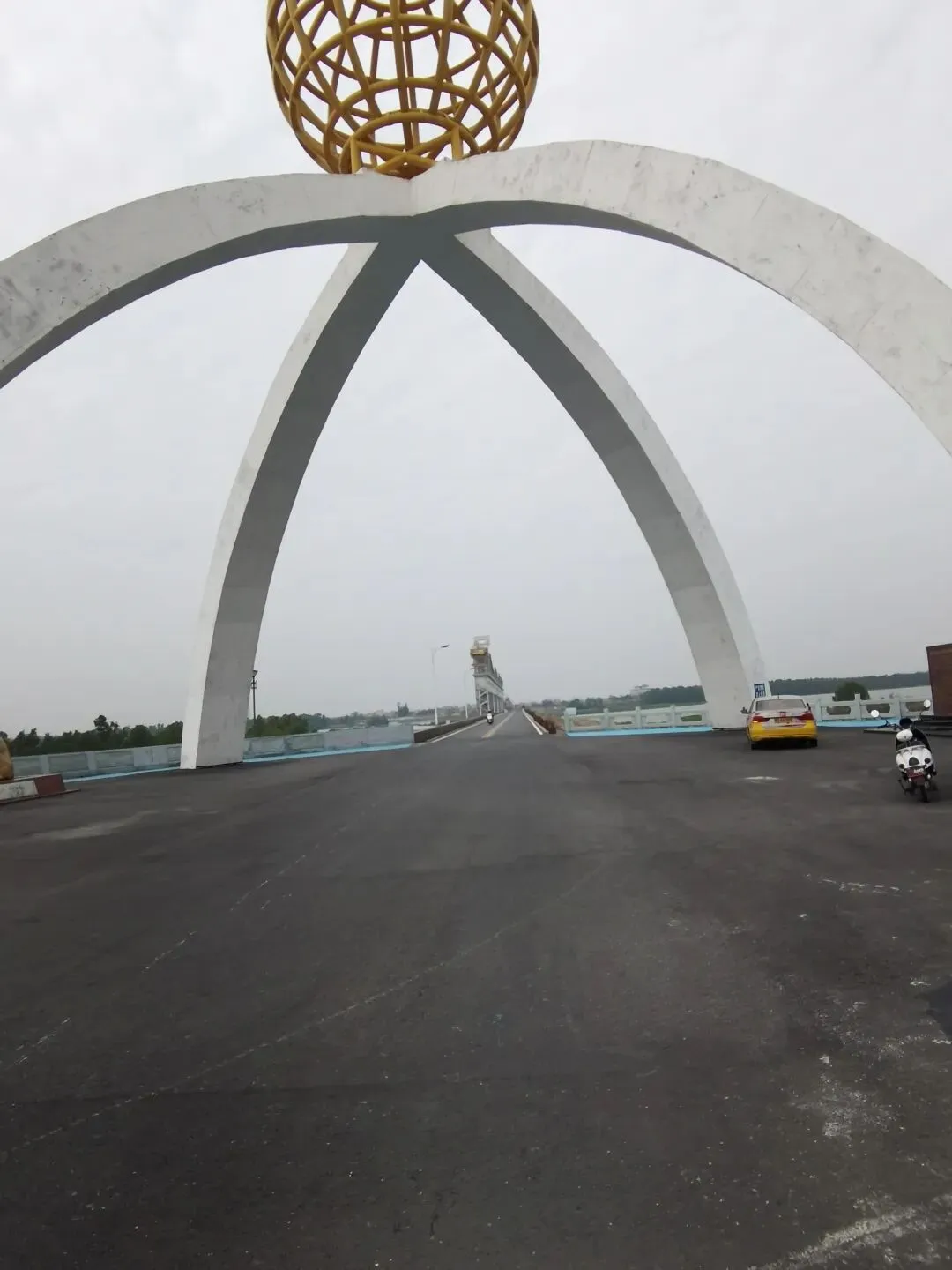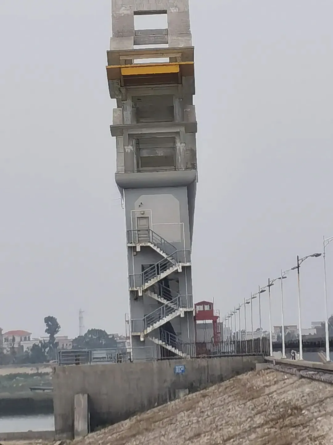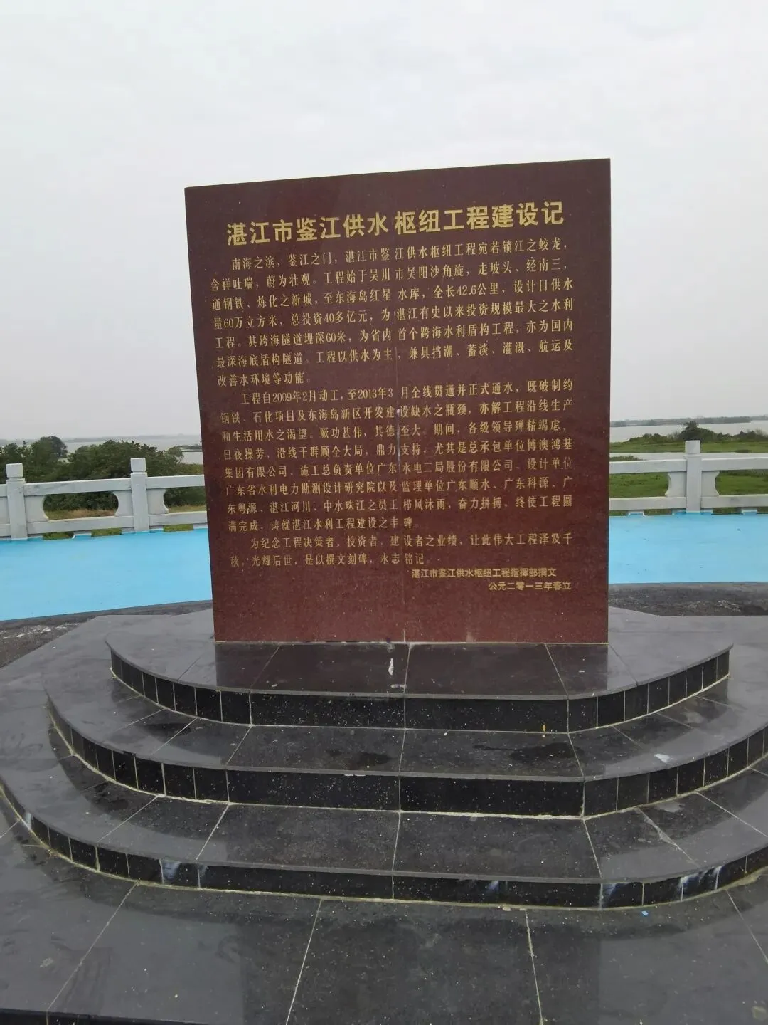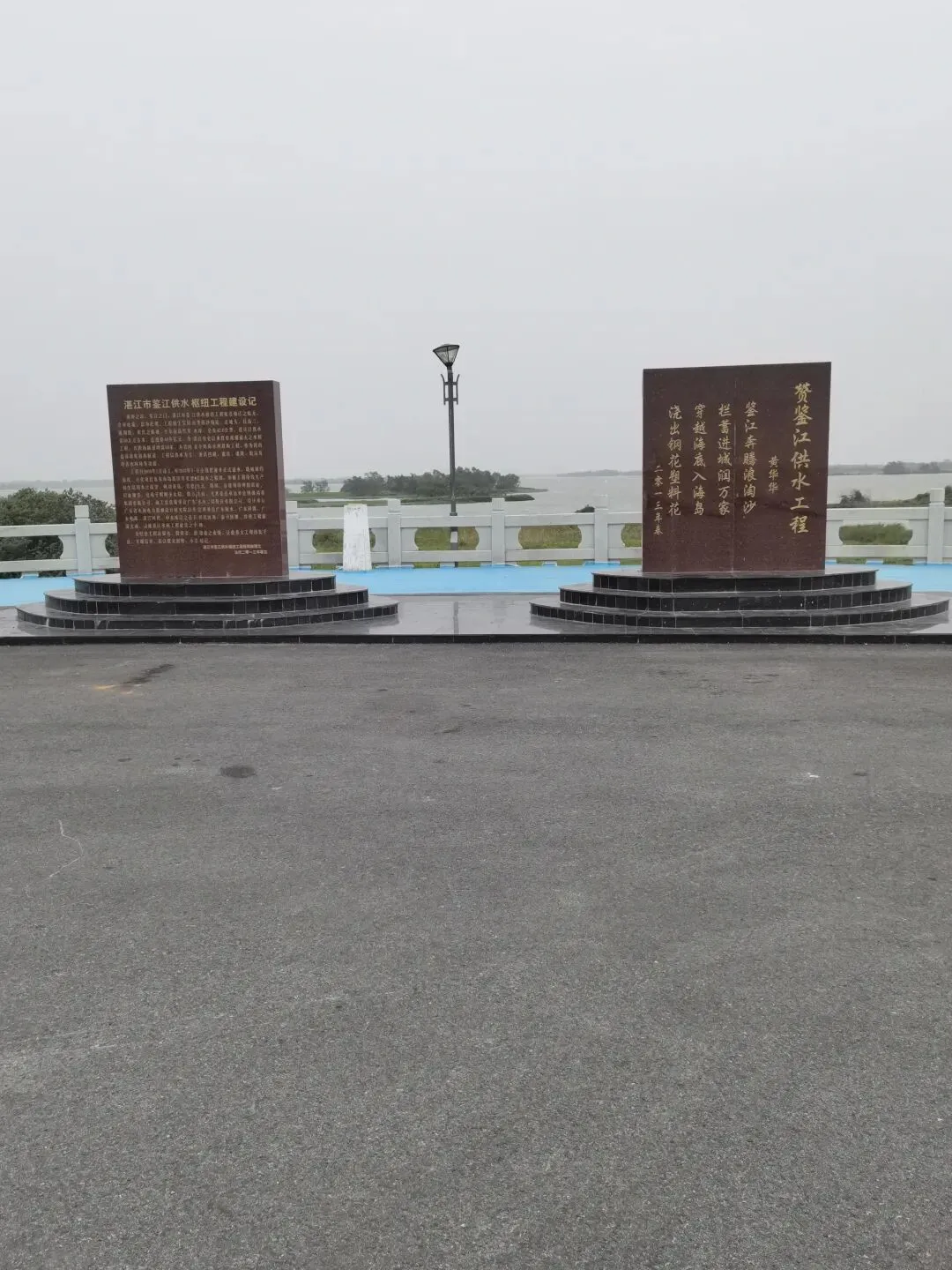 大坝选址于鉴江出海口以西约1.7公里处,横跨吴川市吴阳镇与坡头区之间。主体建筑包括泄洪挡潮闸、通航船闸、两岸连接土坝等,闸坝顶部饰有锁江蛟龙,中间矗立着巨大的龙珠雕塑,整个景观形成“双龙戏珠”的壮丽景象。这种将水利工程与地域文化符号相结合的匠心设计,让钢筋水泥的宏大建筑平添了几分灵动与意蕴。