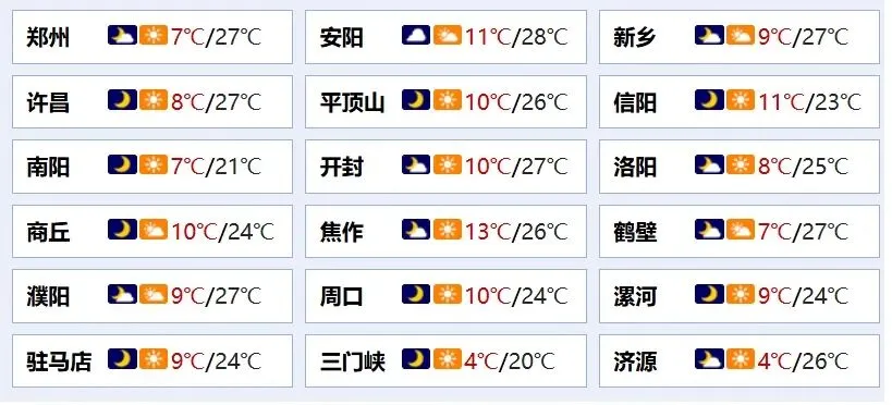 ⭐ 今天,大回暖进入倒计时,郑州最高气温可达27℃,南方局地30℃左右,随后冷暖急转,极端大风,范围最大最强的沙尘,内蒙古东部、东北地区还将有大到暴雪。详情>>