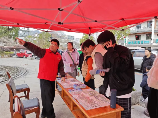 ▲连日来,休宁县齐云山镇组织动员镇、景、村志愿服务力量百余人,在登封桥、东入口、索道站等核心区域设置6处志愿服务台,全面开展秩序引导、旅游咨询、应急协助等志愿服务活动。·吴亚婷·