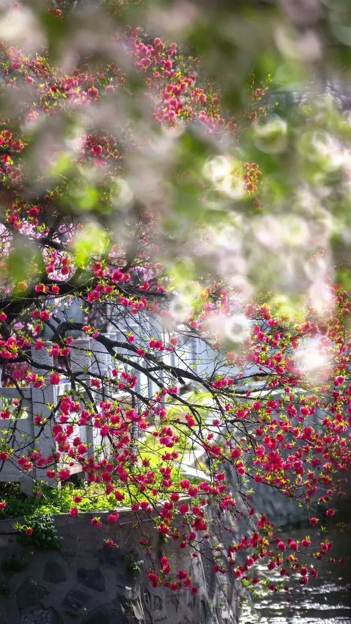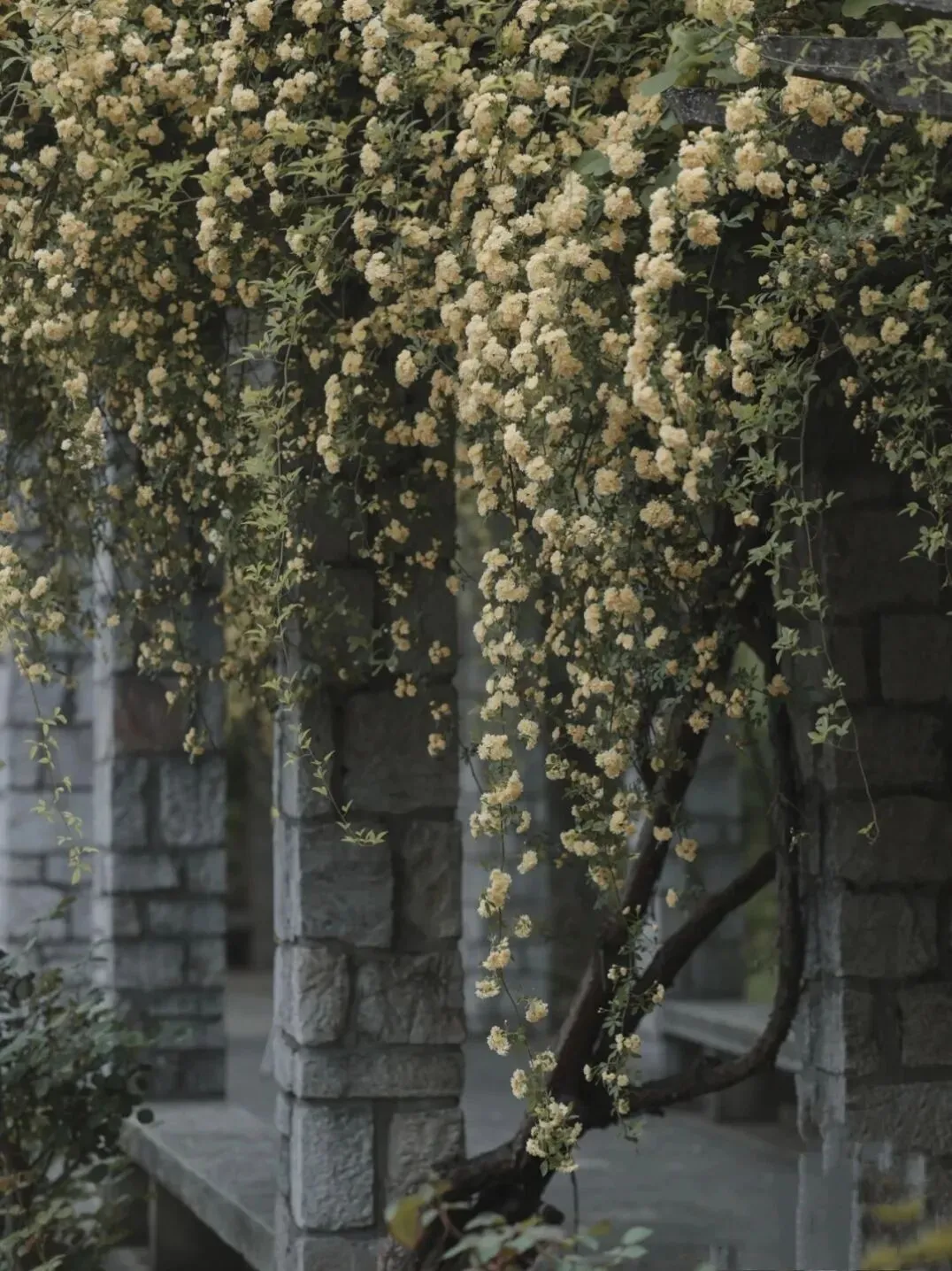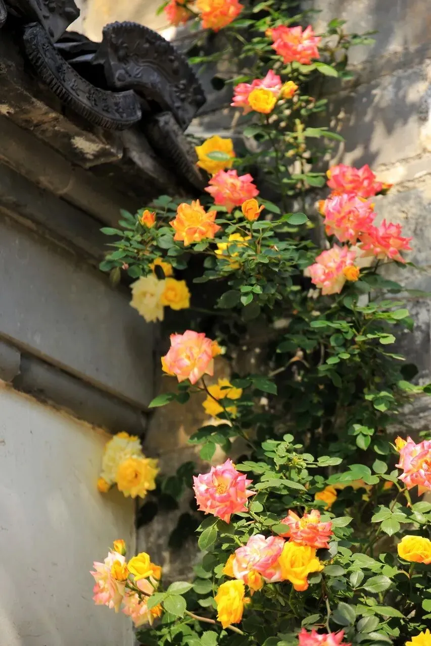 或是连成片,好似溢出一般,想藏都藏不住。 或是一两枝翻出墙外,调皮的挑逗着你的爱美之心。