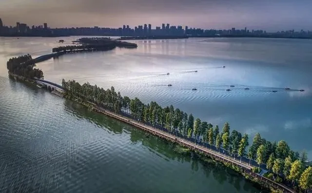 杭州西湖六倍大!第一次去我还以为跑郊外了 , 哪有城中湖这么大的?湖边坐着吹风 , 柳枝晃啊晃 , 湖水一下一下拍岸边 , 什么烦心事都没了