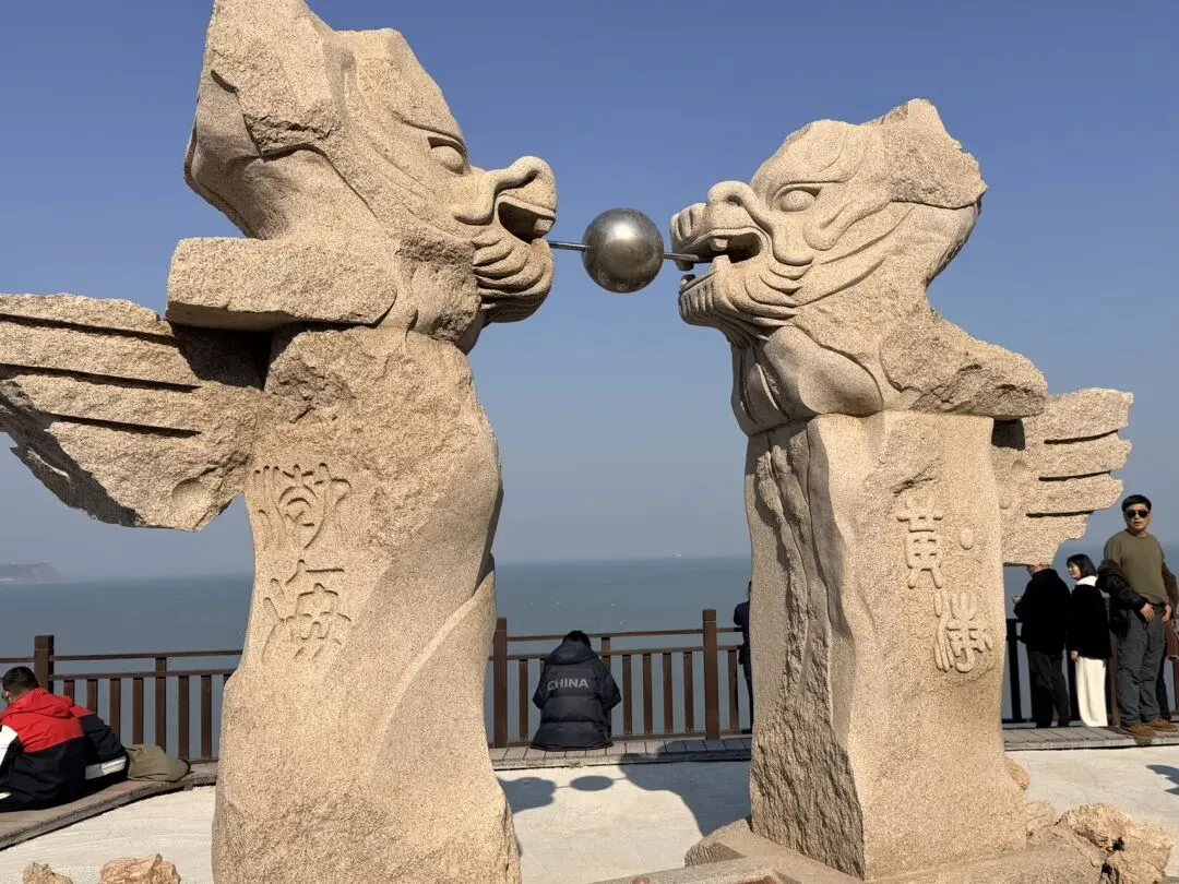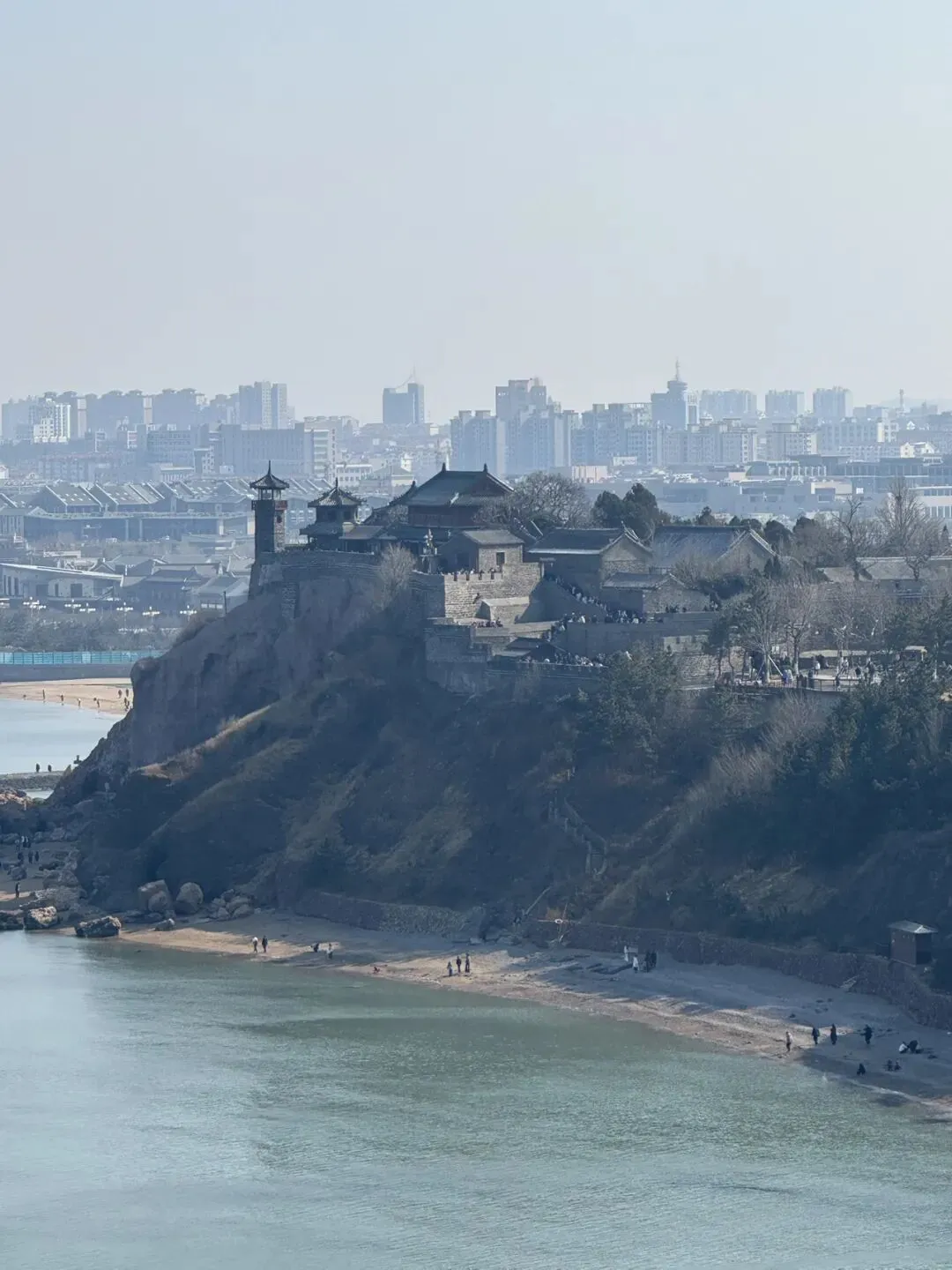 三仙山景区门口被投喂的海鸥 估计三仙山、八仙过海两个景区都是新建的现代建筑,于是忽略,直奔蓬莱阁景区。大众点评上正好有特惠活动,半价50元/人。因为和田横山景区一起,但中间要跨社会道路,检票进园时候要刷脸绑定,再去下一个景区刷脸很方便,好评。