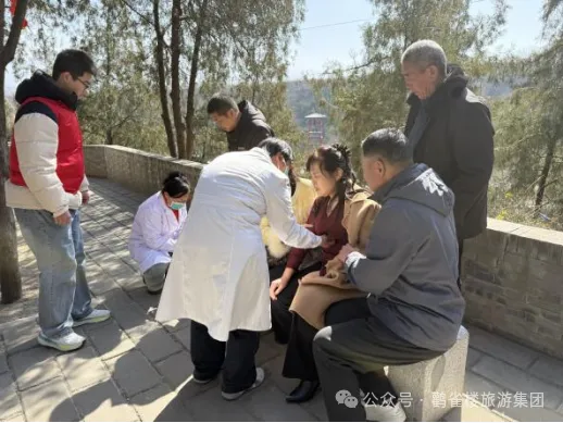 普救寺景区一名女游客因低血糖晕厥,王静媛、秦国军发现后立即搀扶休息,取来糖水和糖果,医护人员迅速到场处置,游客恢复后感动致谢。