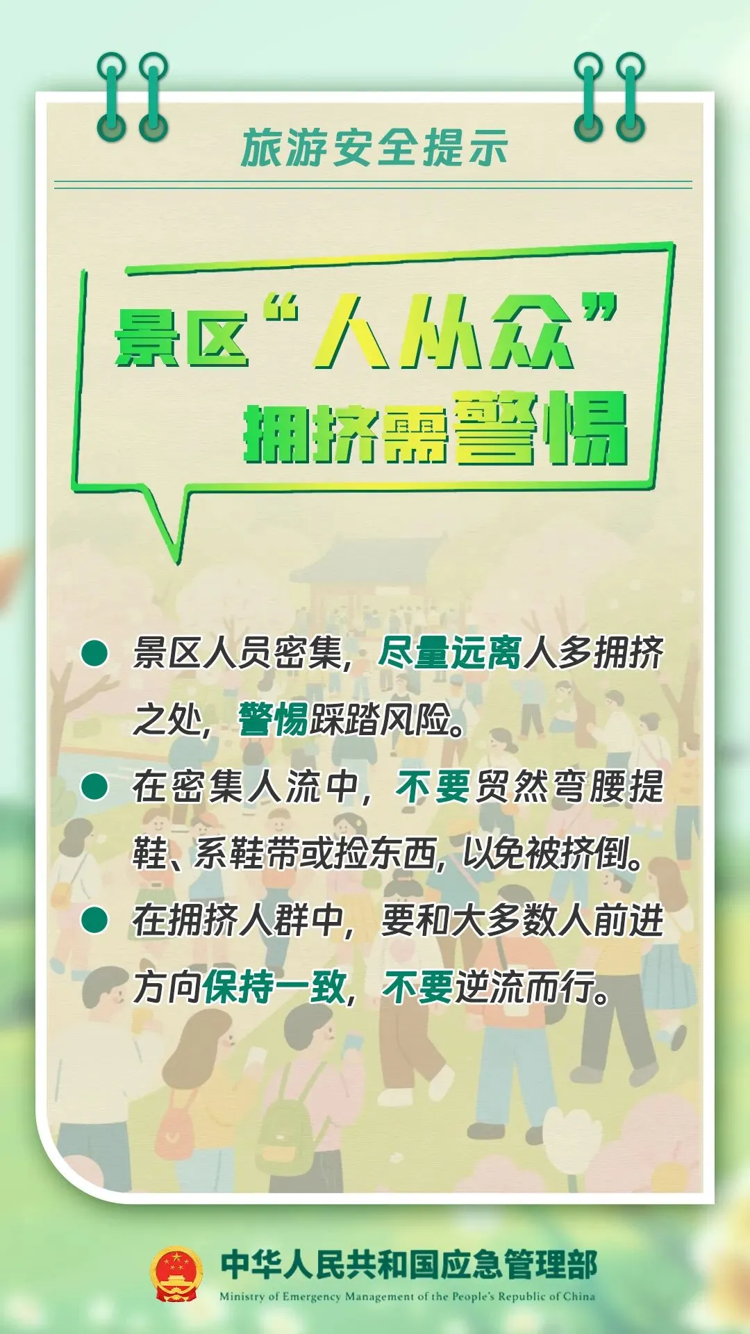 春节假期过半 旅游热度持续攀升 保障旅游安全 游客要提高安全意识 选择正规的景区 审慎参加高风险旅游项目 不前往未开发开放、缺乏安全保障的区域 假期出游 这份安全提示,一定要收好 ↓↓↓