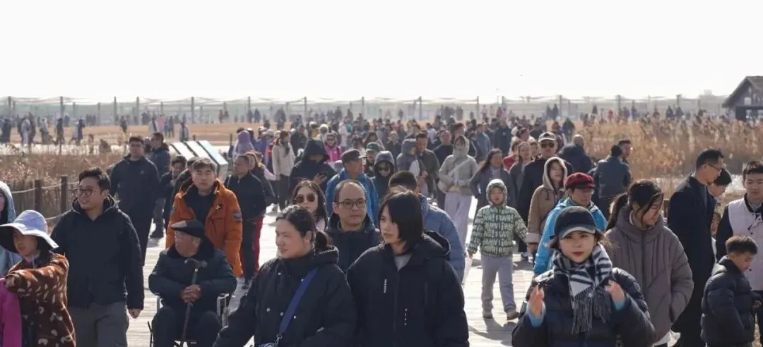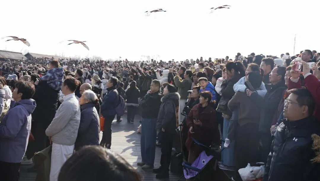 丹顶鹤景区的热闹程度却一路狂飙