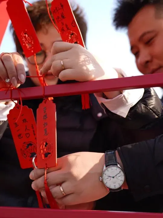 情侣们携手许愿