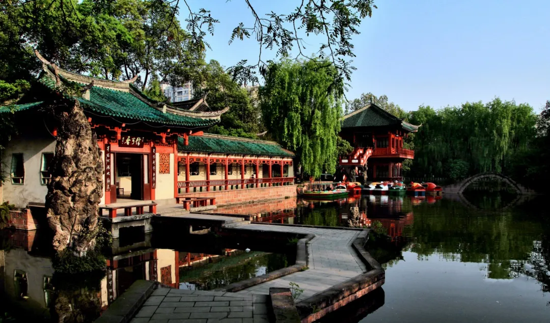 作为川西著名园林之一,房湖景区内奇石林立,突兀冲天,假山峥嵘,挺拔俊丽,既有苏式园林的小巧玲珑,又有巴蜀园林的淳然古风。