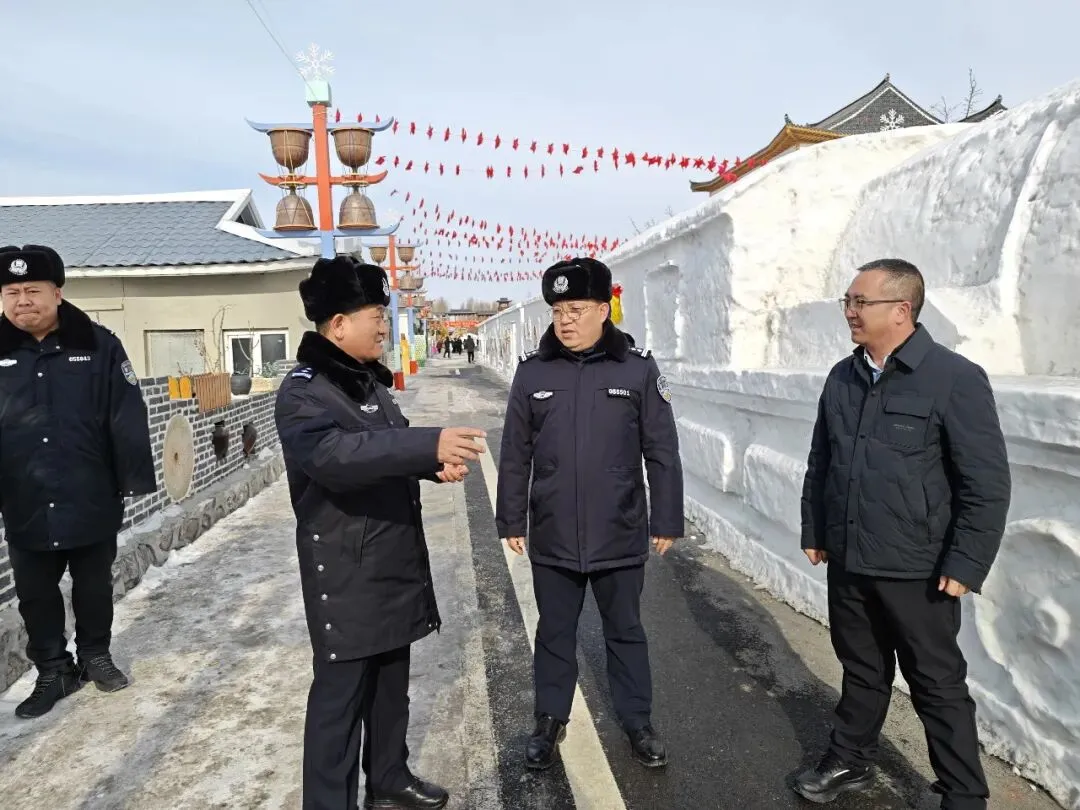 赵光辉先后前往景区冰雕、冰上娱乐区、游客集散中心等重点部位,围绕治安防控、设施安全、应急保障等方面开展安全检查。重点检查景区警力部署、巡逻防控、游乐设施安全状况,冰雕雪景融化解冻情况,督促旅游景区要压实主体责任,强化风险意识,及时排查整改景区内部安全隐患。