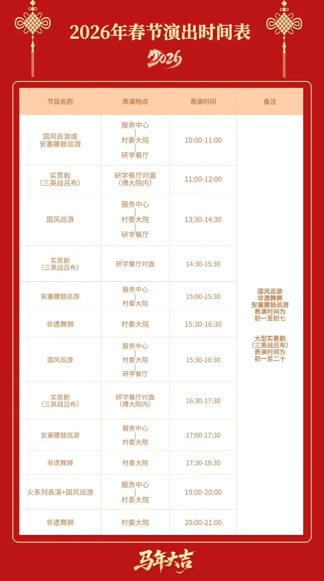 对春节期间的节目演出时间