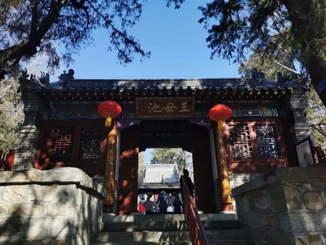 进了山门,便是王母泉,已经锁起来了,泉水汇聚到一个小池子里,就是王母池了。