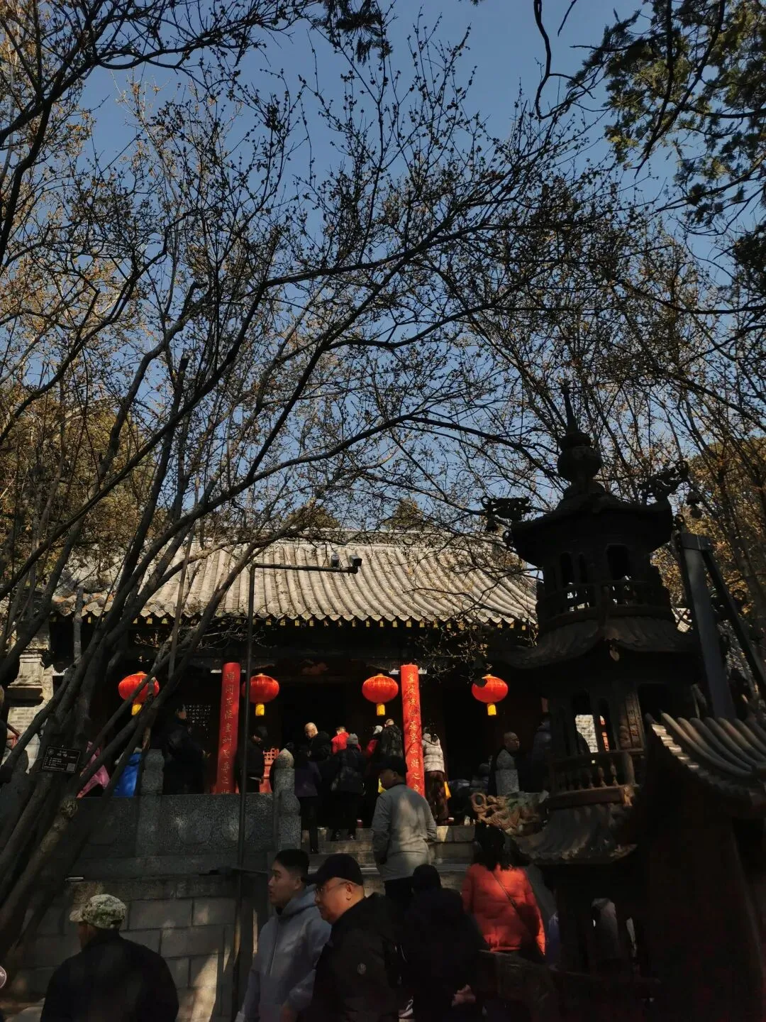过了第二道山门,便是正殿、药王殿等,正殿前的两株蜡梅已有六百年历史,树冠高大,当天去时已经开败了,仍有暗香浮动,不敢想象盛开的时候得有多香!