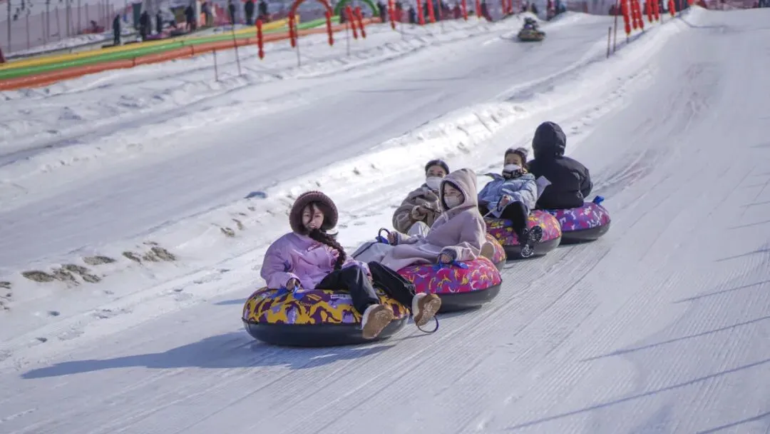 亲子戏雪区:30000㎡戏雪乐园,雪地坦克、极速雪圈、儿童火烈鸟等二十余种项目。