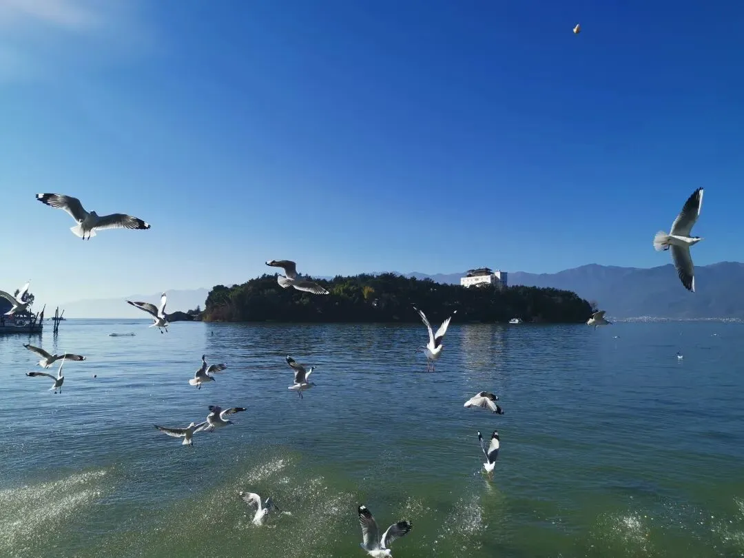 到了每年的11月-3月海鸥季,此时的大理气候正适宜,望着海鸥坐在湖边可以发呆一下午。 二、苍山