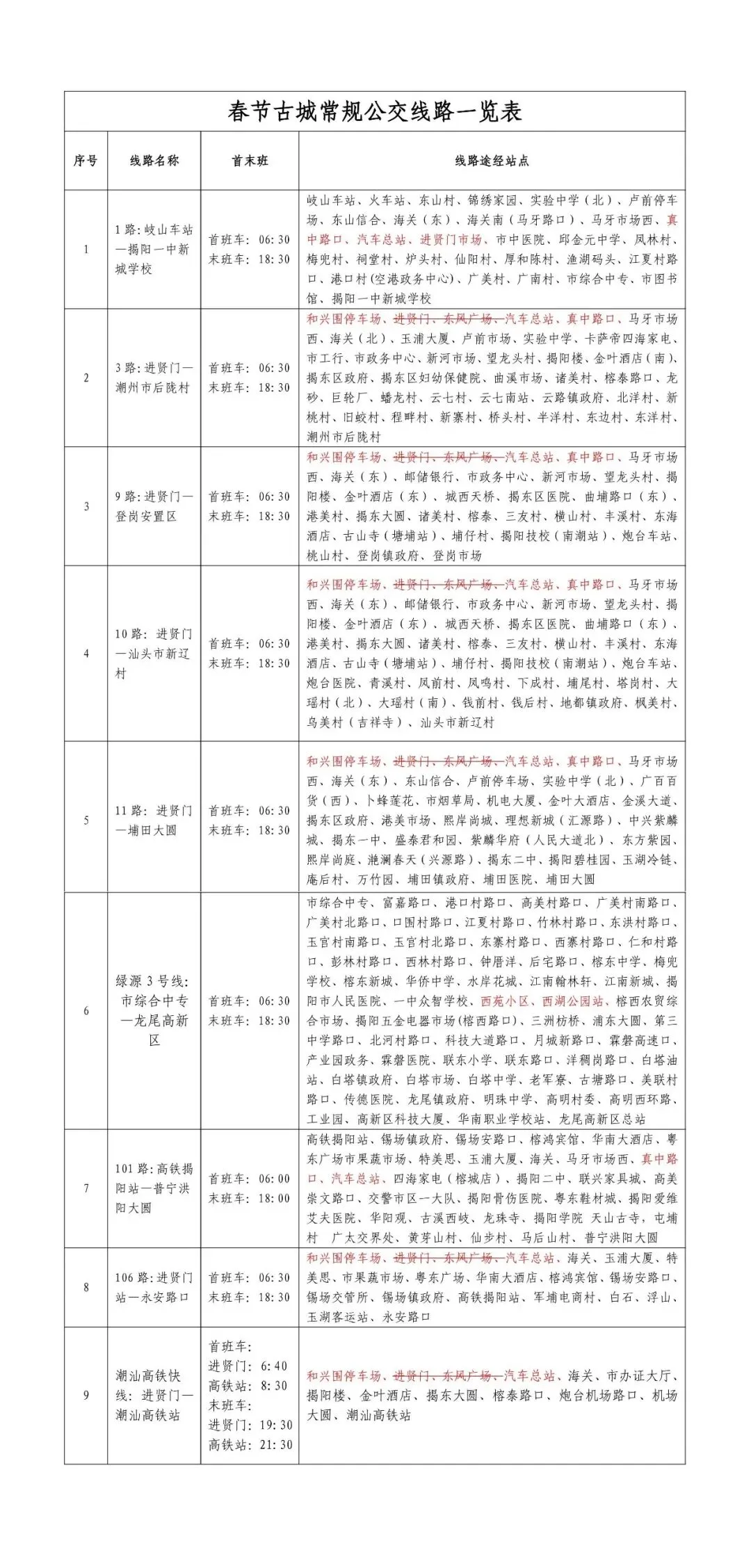 揭阳开通春节“古城景点摆渡专线”等3条定制公交线路