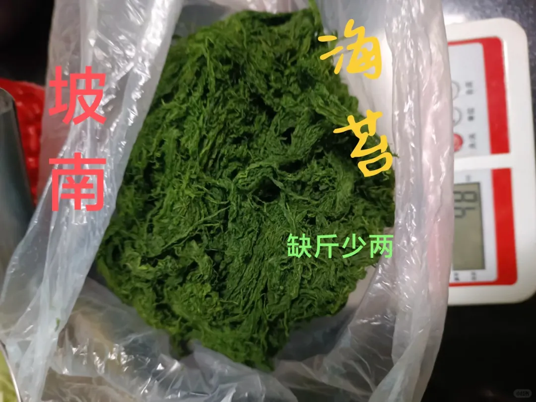 有网友反映,她在坡南街向一位老太太购买2两海苔,回家后称重仅49克,让她直呼离谱。